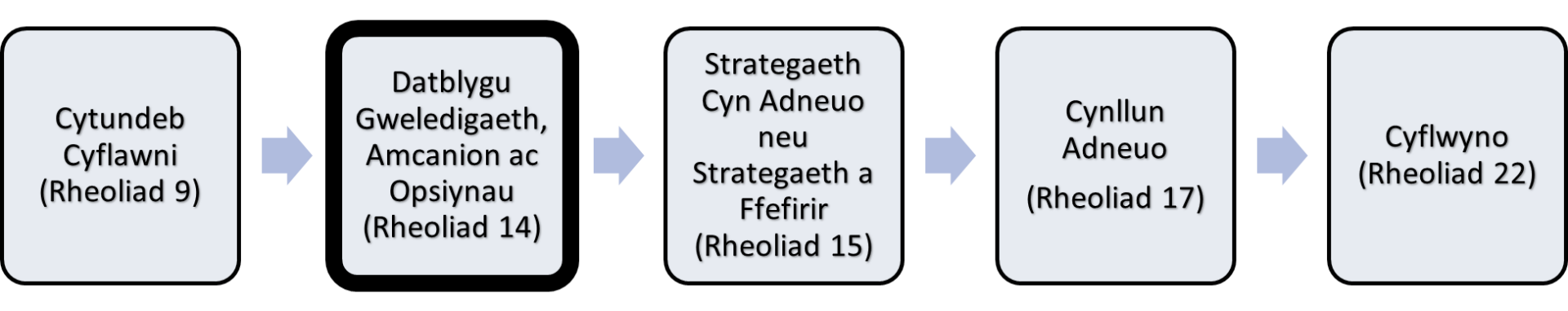 1.3.3 Ar ôl i'r ymgynghoriad hwn ddod i ben, bydd y Cyngor yn ystyried yr holl ymatebion ac yn paratoi dogfen “Strategaeth a Ffefrir”. Bydd y Strategaeth a Ffefrir wedyn yn cael ei chyhoeddi ar gyfer ymgynghori arni.