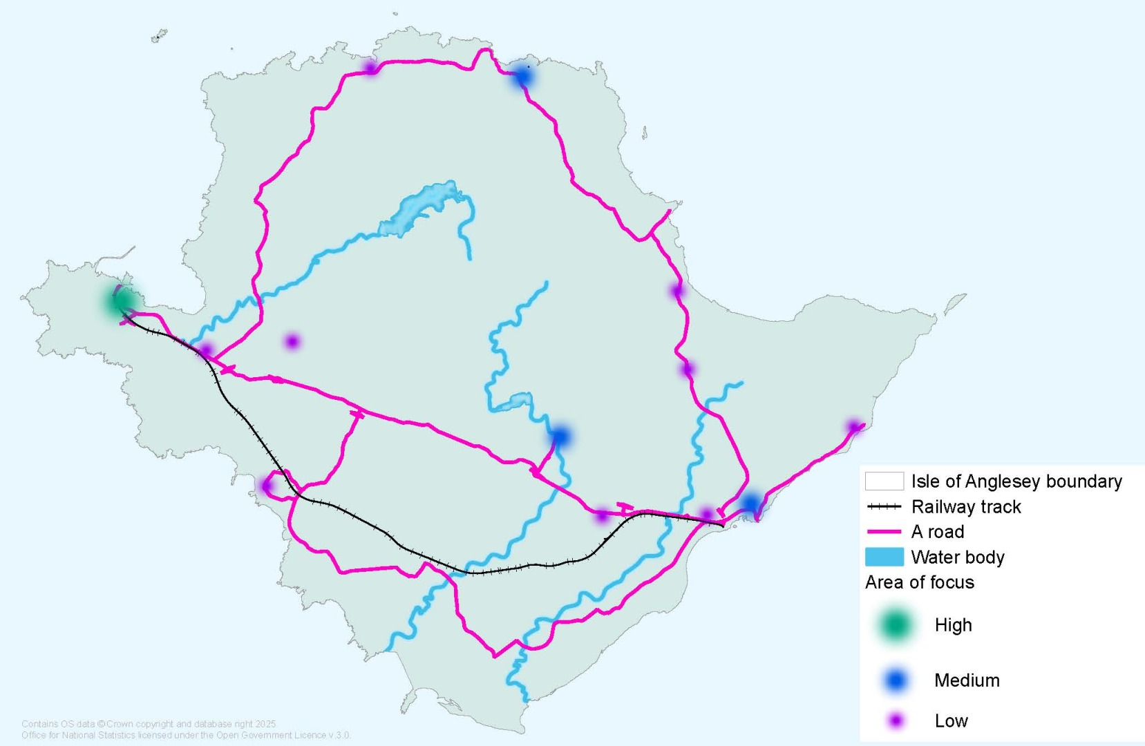 - The A55 corridor correlates with 3 of the 4 key settlements of Holyhead, Llangefni and Menai Bridge. However, this option would not maximise development in Amlwch which is a key settlement in the Settlement Hierarchy